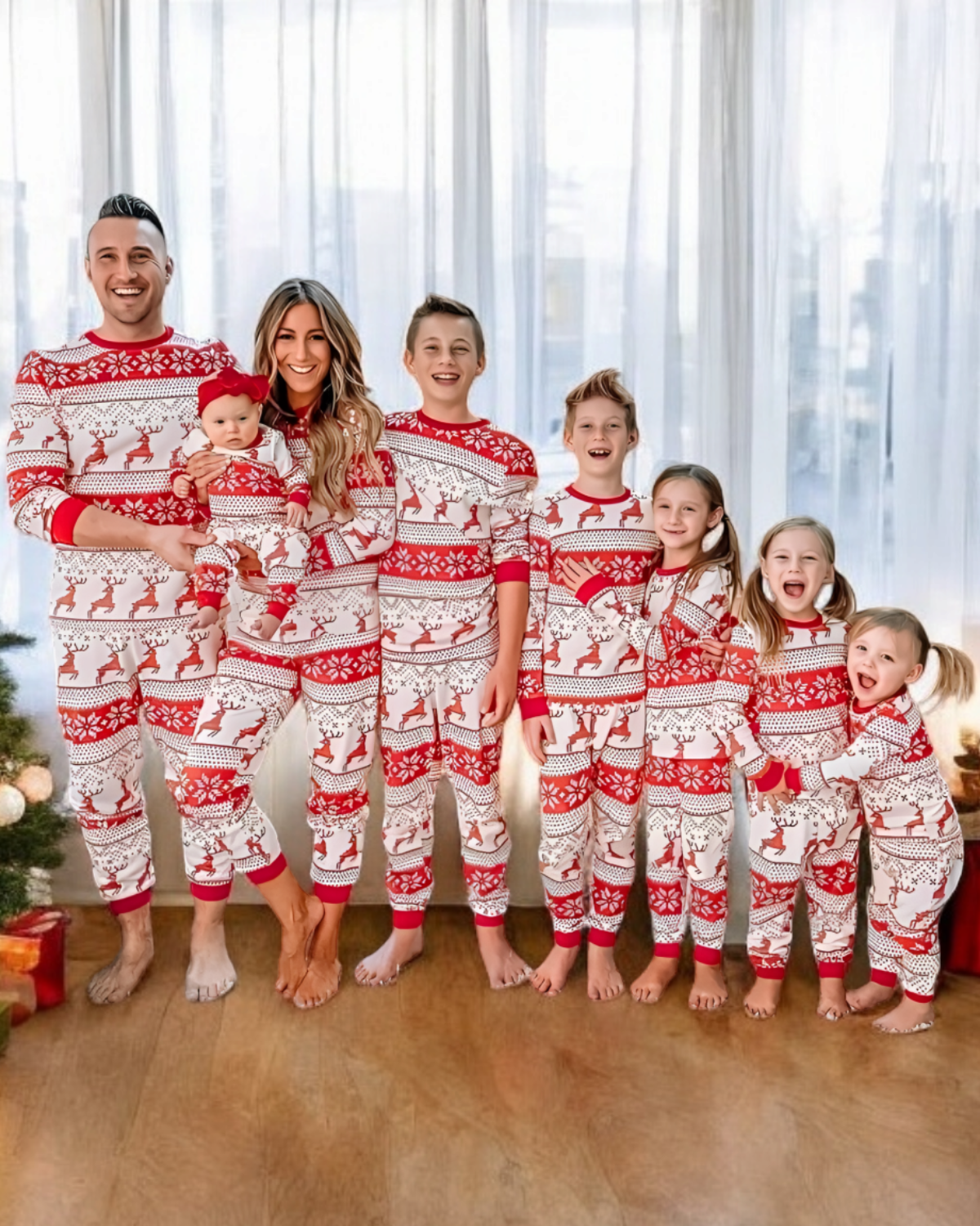 Celebrate the holiday season in style with these Festive Print Family Matching Christmas Pyjamas! These cosy pyjama sets feature an adorable elk print, adding a touch of festive cheer for the whole family. Crafted with fine quality polyester, these pyjamas ensure comfort and warmth throughout winter nights, perfect for making cherished holiday memories together.